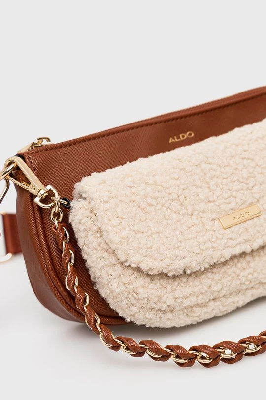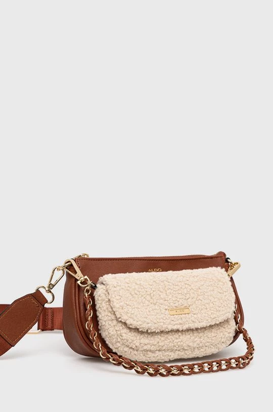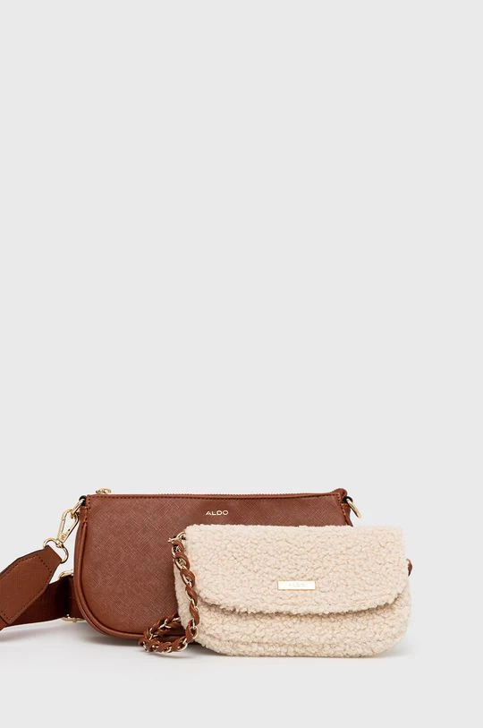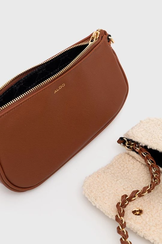 Μικρή τσάντα από τη συλλογή Aldo. με κλείστρο μοντέλο από συνδυασμό υφασμένου υφάσματος και οικολογικού δέρματος. Το μοντέλο συνοδεύεται από μια μικρότερη τσάντα.